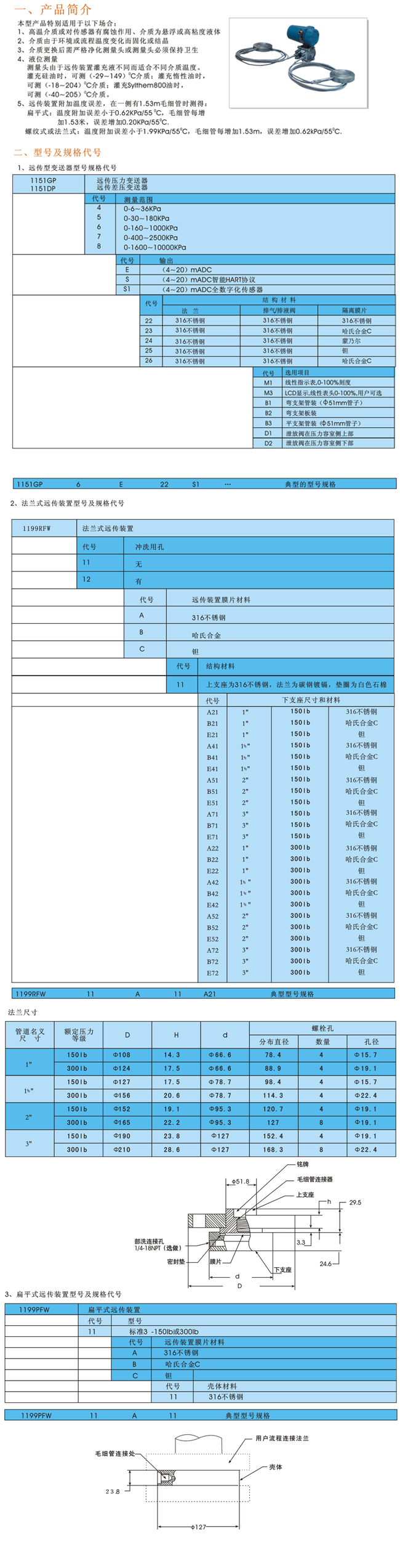 1151GP、DP遠(yuǎn)傳壓力、差壓變送器